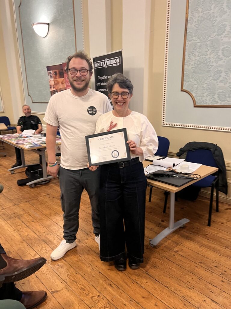 The Mayor of Faversham, Cllr Josh Rowlands, Mayoral Awards to Steve Sherlock for his services to the Faversham Community Christmas Lights and Amanda Dackombe for services to the Faversham Literary Festival